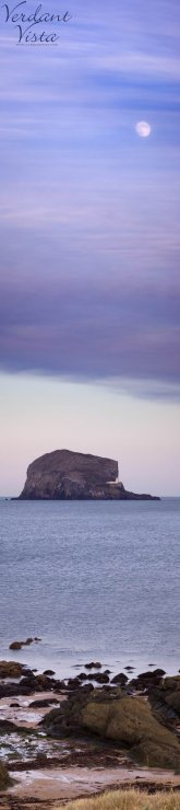 This is a 15 frame vertical panorama of moonrise over the Bass Rock.